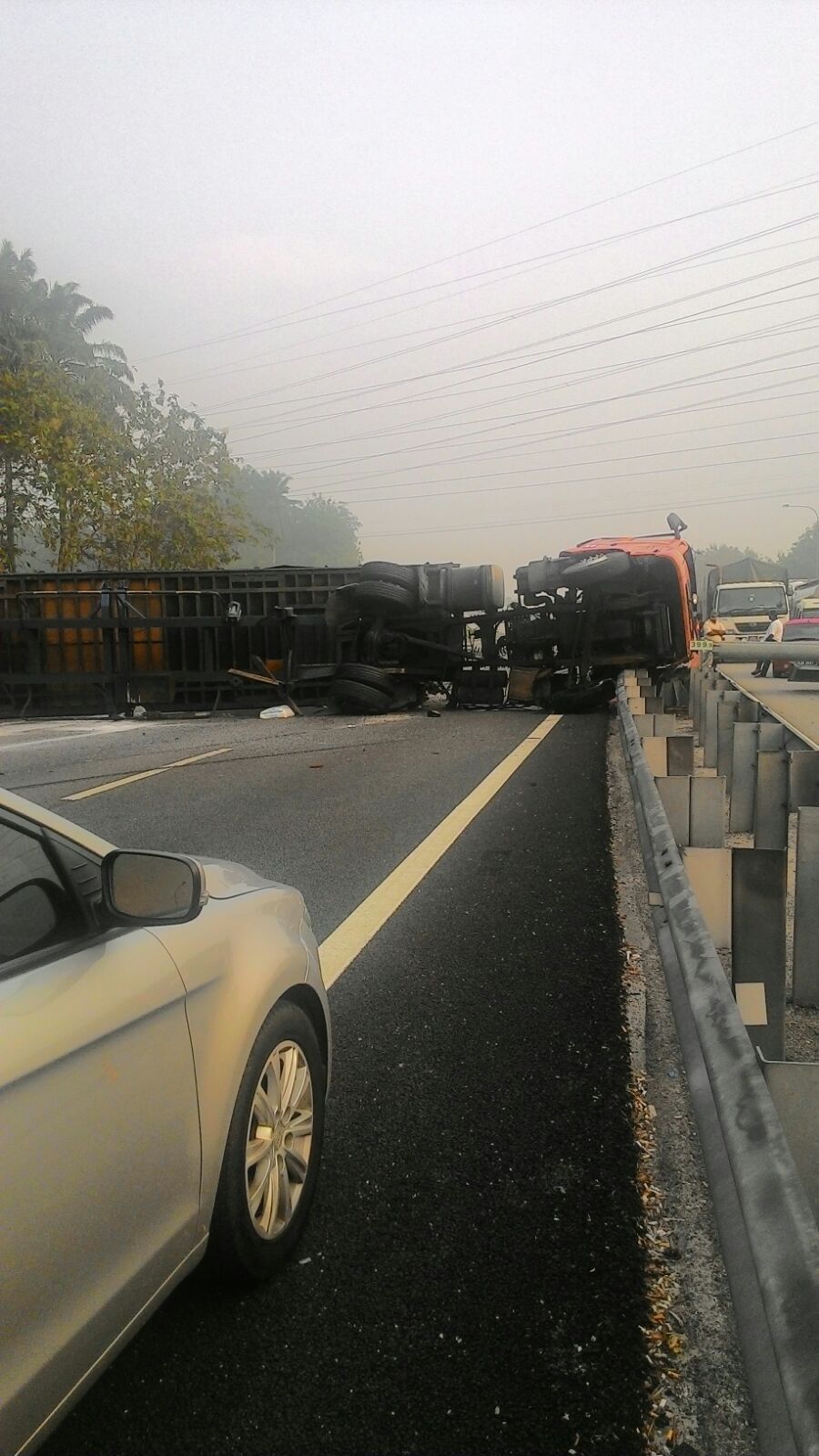 Satu kemalangan jalanraya yang berlaku secara malang (road accident by accident/misfortune) telah berlaku pada sekitar 6.35 pagi, Sabtu 10 Oktober 2015, iaitu seperti berikut: